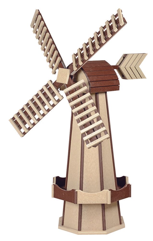 At Beaver Dam we have decorative windmills that can act as a centerpiece for your garden, and we have some that perfectly accent your existing lawn decor. Do you have a well pipe that needs covering? Poly windmills will just to the job! You can mix and match color options too, that way you can find something that perfectly fits your sense of style! Choose your color combination from the color chart.